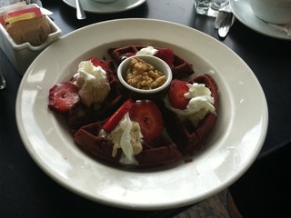 Red velvet waffles from Society Coffee in Harlem. (Facebook/Society Coffee)